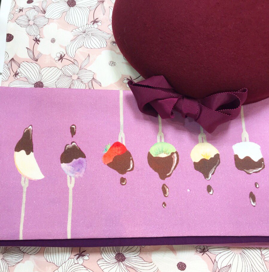こんなものも!チョコレートフォンデュをそのまま柄にした美味しそうな半幅帯。こちらは洋服地きもの専門店・ミミズクヤのオリジナルです。リバーシブルで裏地はチョコレート色の無地。バレンタイン以外のシーズンもコーディネートのアクセントに活躍しそうですね!