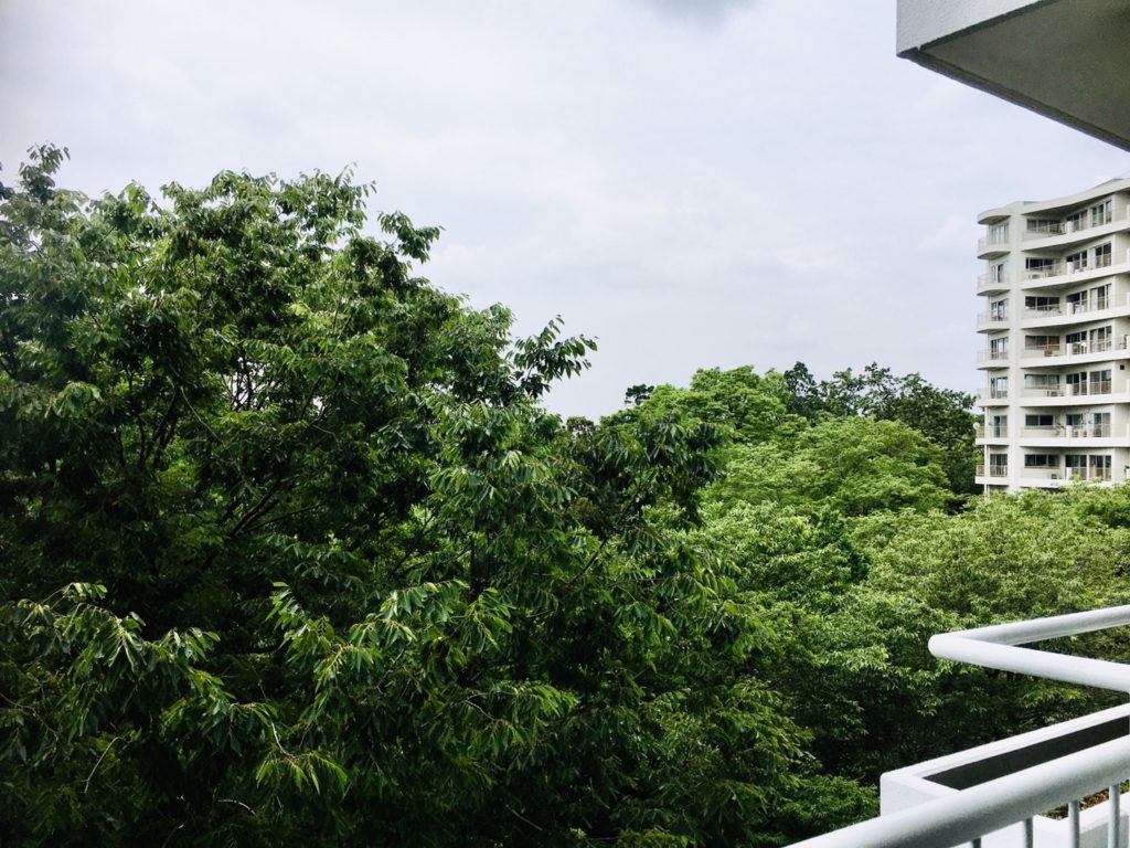 目の前の高い木(ここは6階です)から、いつこちらに不意打ちをかけようか、様子を伺っていたのでした。