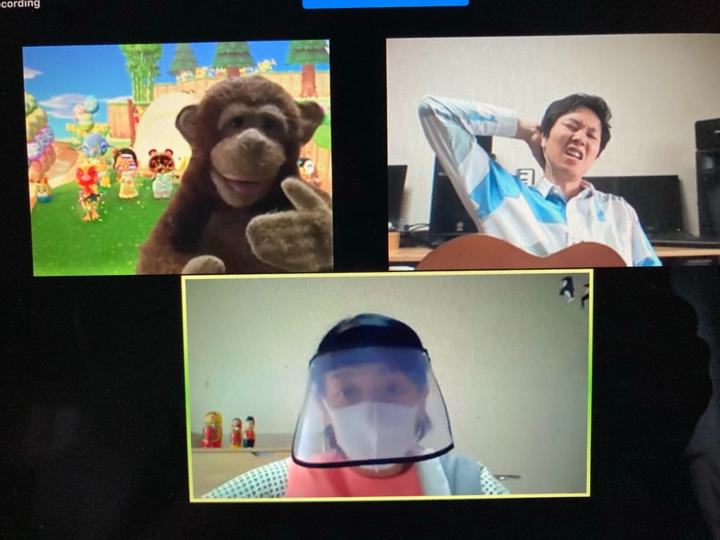 それぞれの自宅から配信です。なので三分割の画面に。この時点でちょっと新鮮な気分です。