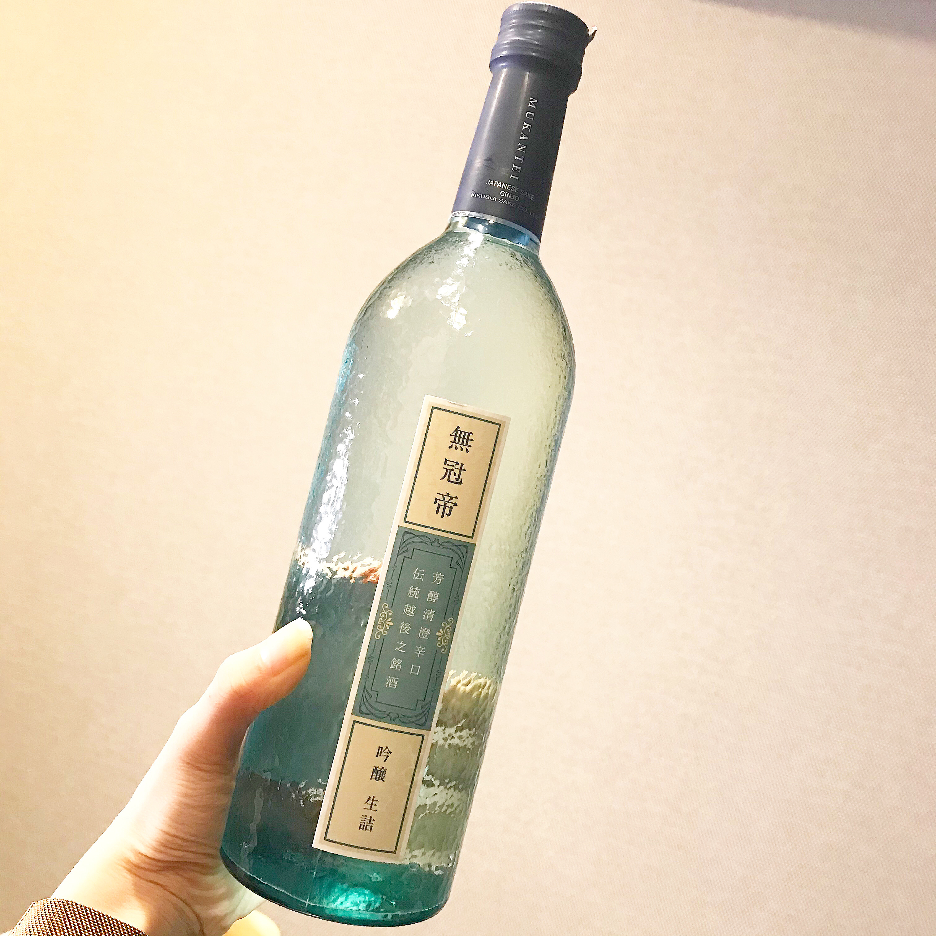 菊水酒造さんの「無冠帝」。なんとクリアでおしゃれなボトルなのでしょうか。