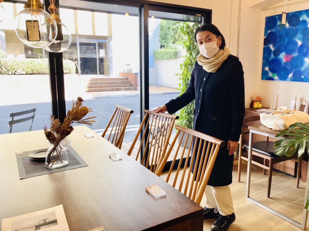 「すみません!菊水のBREWでブロガーをしています、街角マチコと申します。」とご挨拶し、柳父さんの記事を拝見していたこと、今日は椅子を見に来たこと、ショールーム見学を次回の記事にさせていただきたいことなど、お話できました!