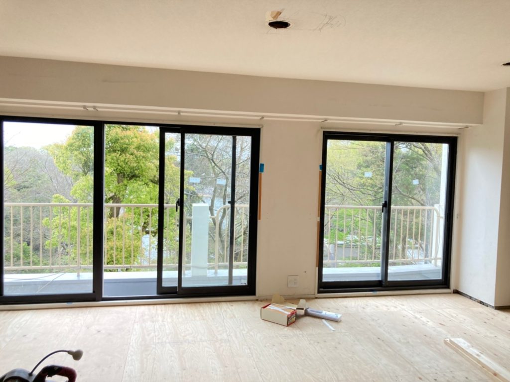 ベランダに愛着がありすぎて、新しいテルミン大学の工事が始まる前に、アルミサッシの枠を塗装してみました。