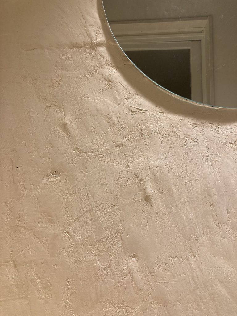 そんなわけで、玄関から教室へ入る突き当りの壁、こちらに漆喰を塗ります。