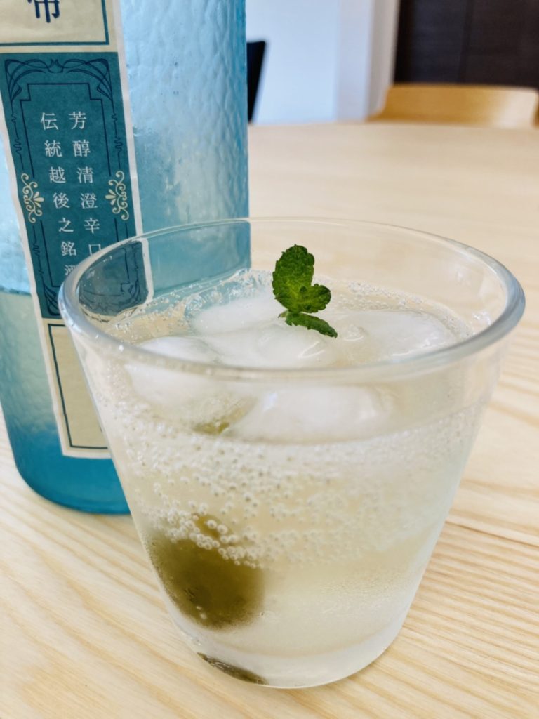 梅シロップと日本酒を混ぜて、ソーダ割りにしてみました。