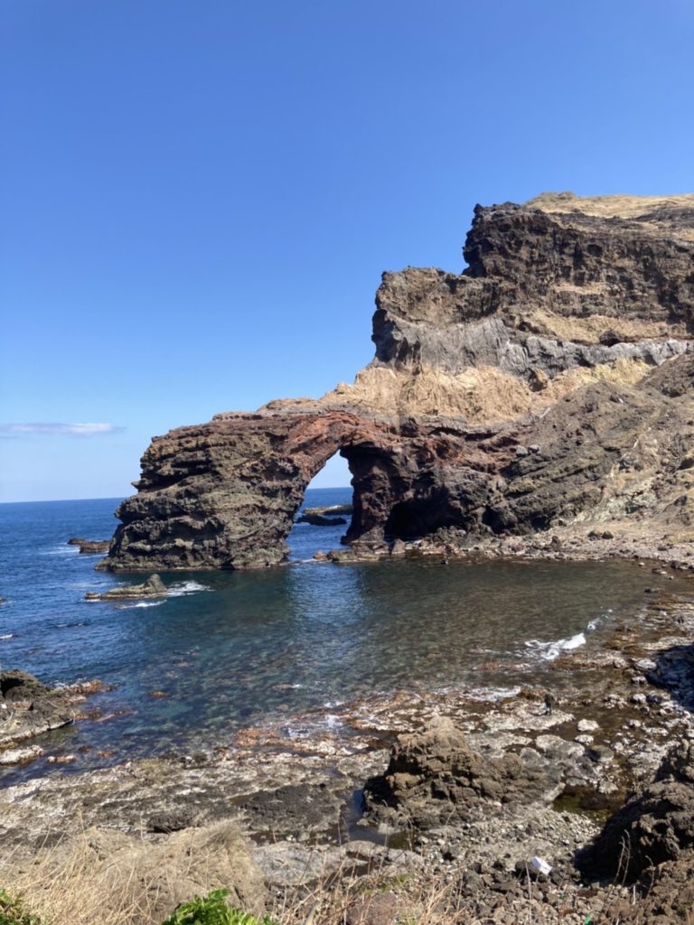 もともと洞窟だったところが海蝕作用で周辺が崩落したりして、アーチ状に残ったんだそうです。