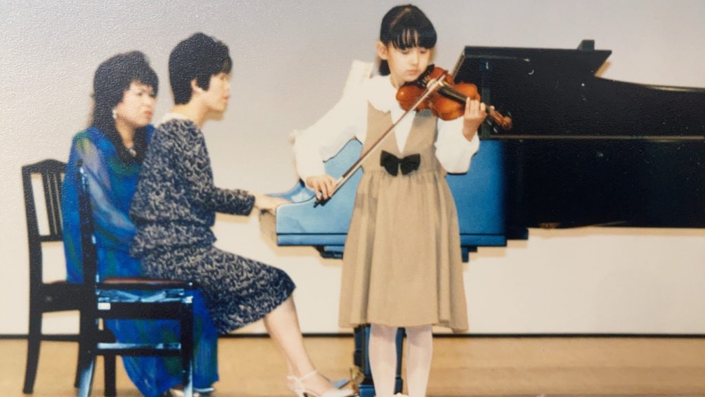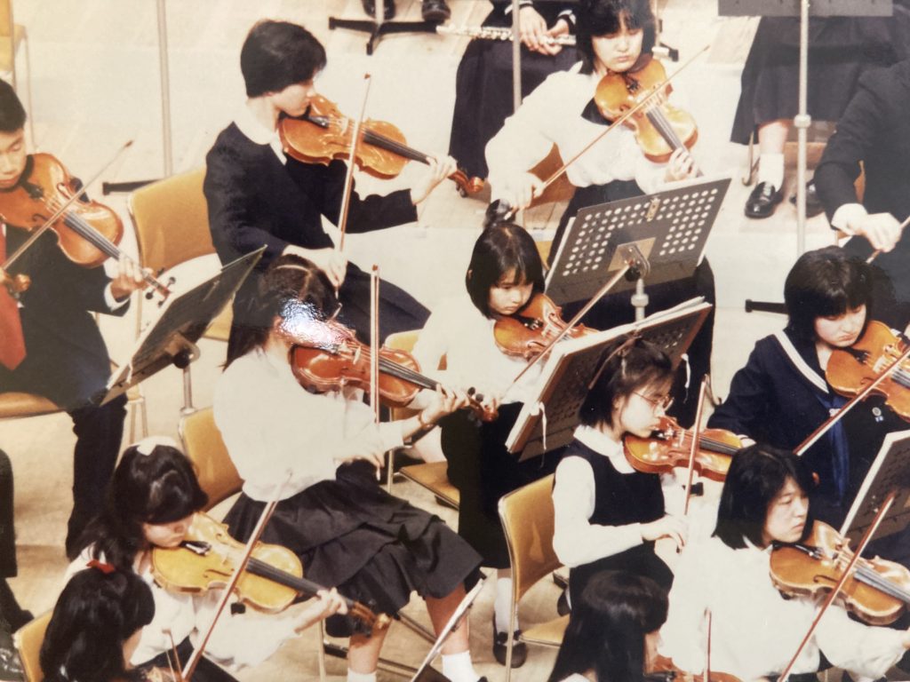まず、5才でバイオリンに出会います。近所の図書館のクリスマス会で、市川市のジュニアオーケストラが演奏しているのを見て、バイオリンをやってみたくなったのです。