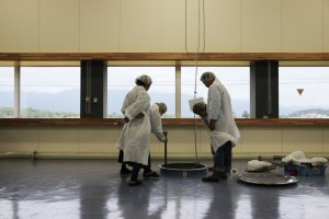 その後、いよいよロンさん御一行がりゅーとぴあに到着。楽屋口では新潟高橋竹山会の皆様が、盛大は拍手で歓迎した。ロンさんも、このサプライズにはびっくりして、黄色いキャップを脱いで、深々とお辞儀をしたのであった。とてもチャーミングな一面を持っている。