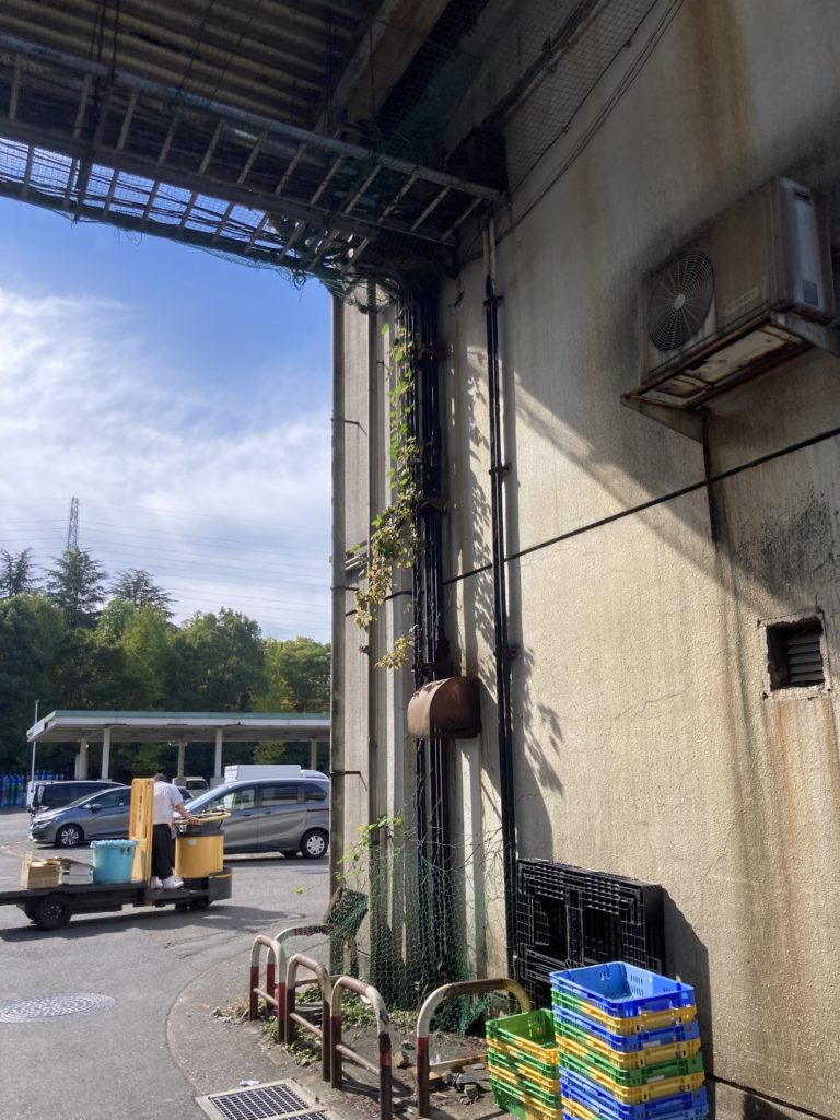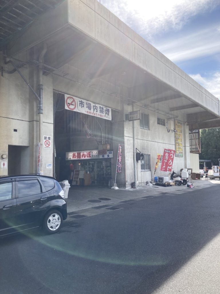 業務用ケースや魚の発砲スチロールケースばかりだった風景から、店舗が並ぶ棟に到着しました。