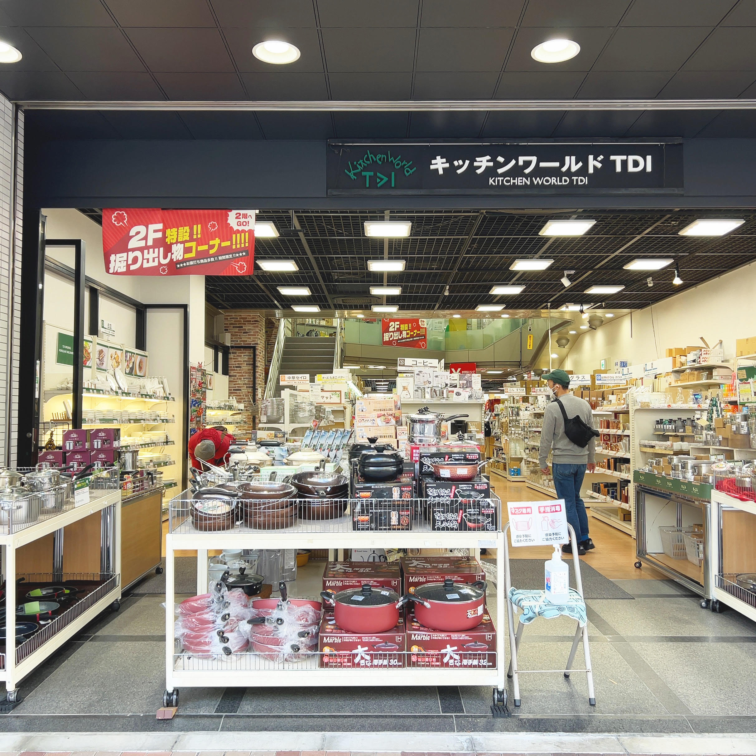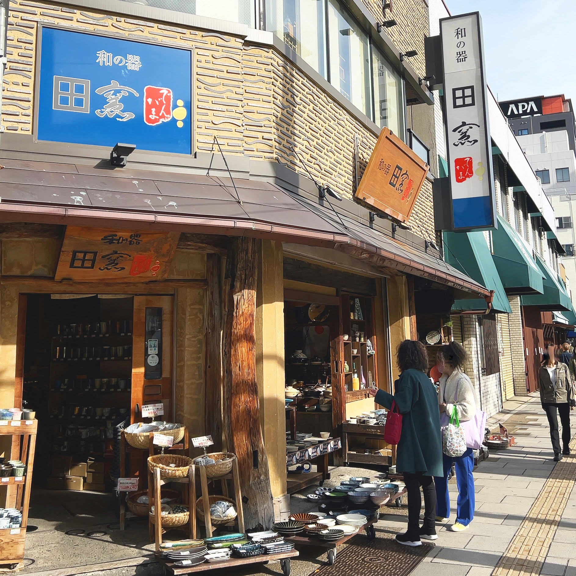 かっぱ橋商店街の田原町側入り口にあり、古民家風の建物が目を引きます。店頭でセールを行っていることも多く、いつもたくさんの人でにぎわっている印象。