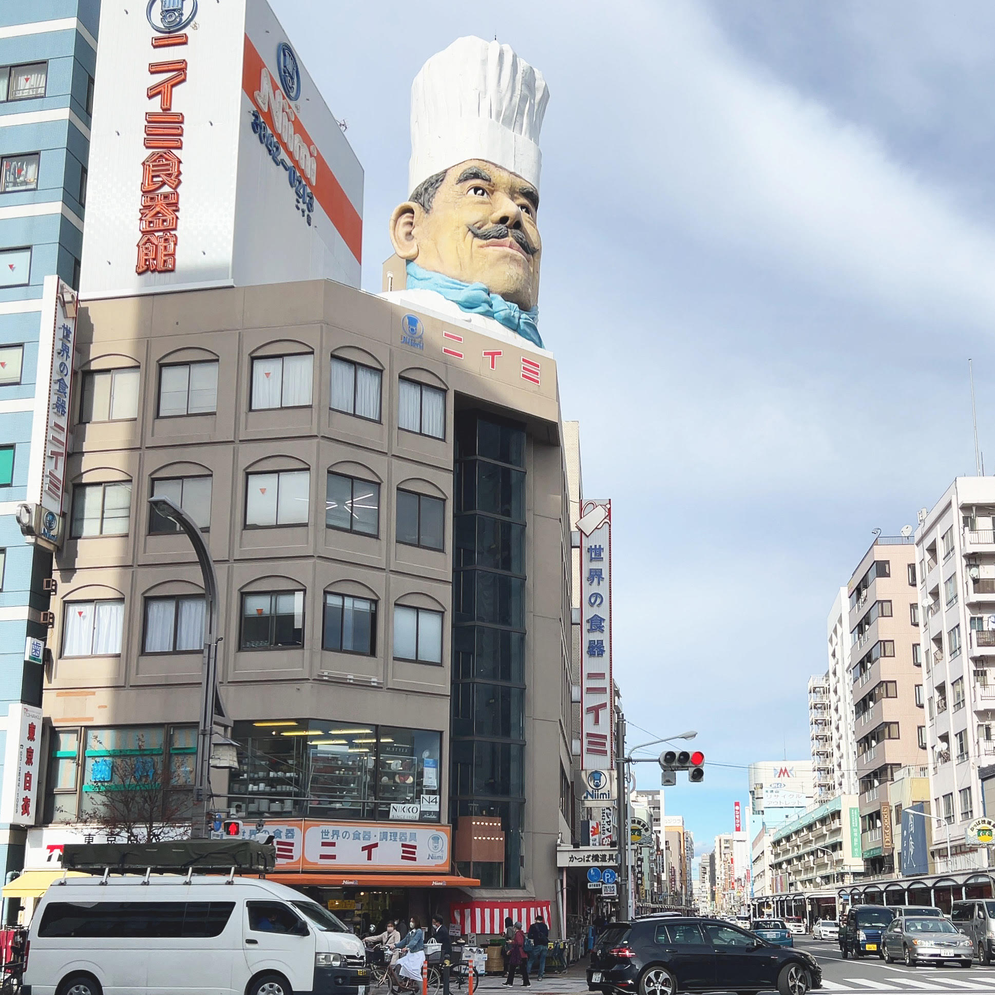 言わずと知れた、かっぱ橋道具街のシンボル的存在のお店。屋上から見守ってくれる巨大おじさんコックを目にするたびに「掃除、どうしてんのかな」といらぬ心配をしております。
