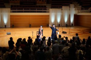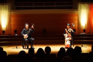 コンサートは、津軽三味線奏者の鈴木利枝さんをゲストに迎え、異なる流派同士のコラボレーションが実現した。
