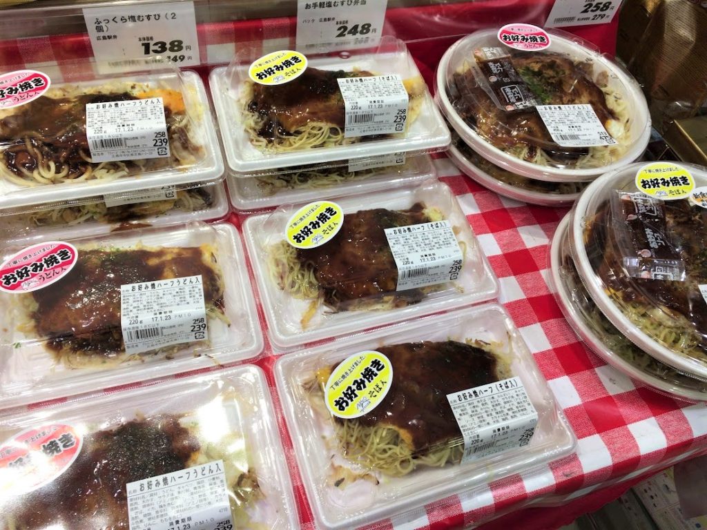 広島のスーパーでは、地元ではあたりまえの「うどんVer.お好み焼き」も並ぶ