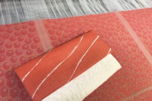 柿渋で染められた素材たち。独特のシワと肌触りと色の表情が生まれる