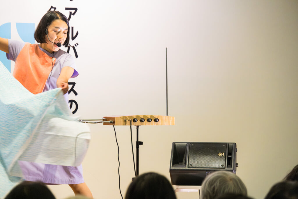 そして、以前こちらの記事でも紹介した、家具職人・須藤イクルさんによる、オリジナル筐体テルミン、ついにこの日ライブで初お披露目でした。