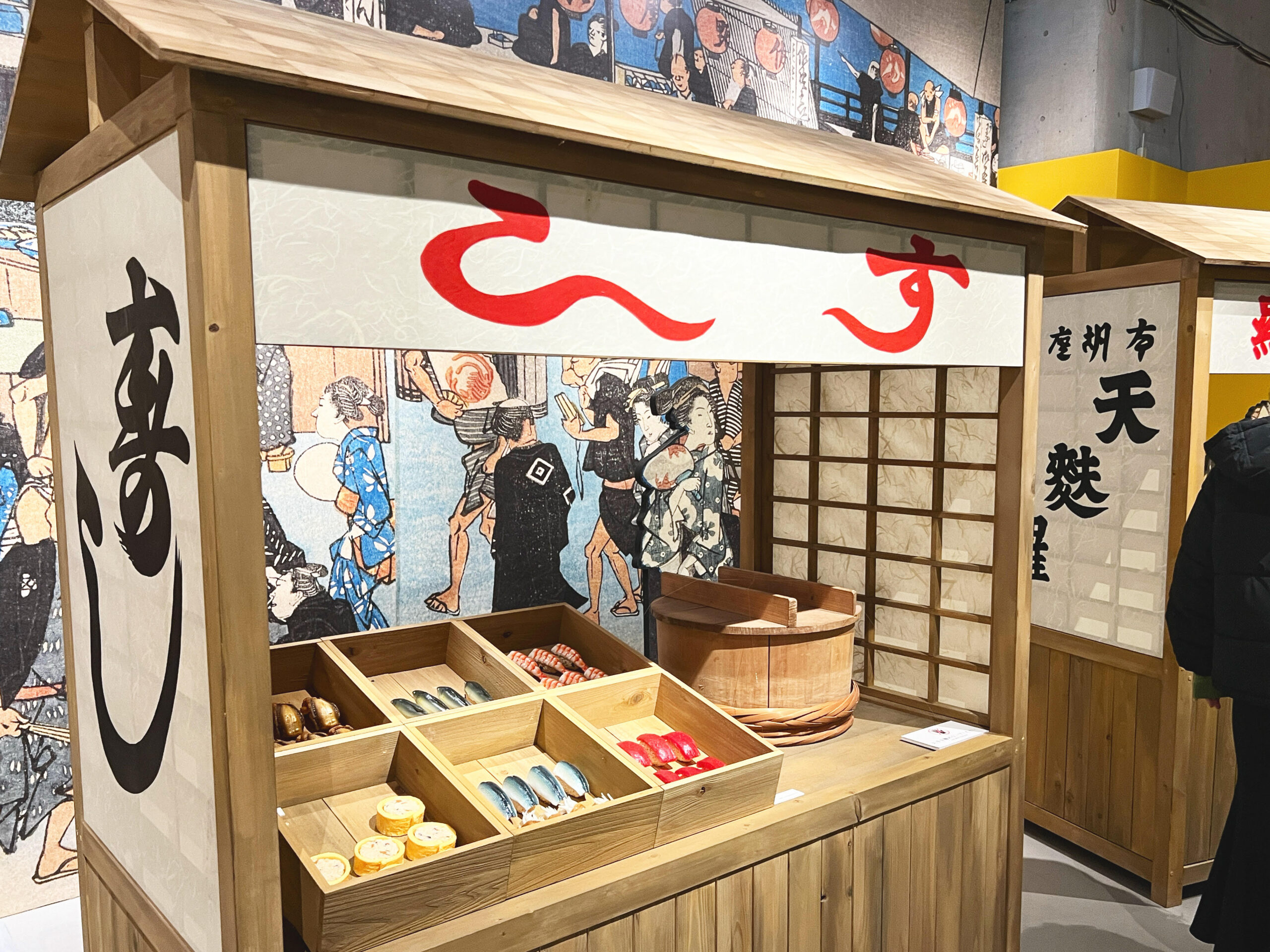 日本の食材を「水」から「菌」まで、歴史や科学など多角的視点での解説を添えたのち、和食の歴史について、成り立ちから様々な食材や食文化が広がっていった様子までを、昔の資料のみならず食品サンプルも駆使して展示している、食いしん坊心を鷲掴かまれる内容です。