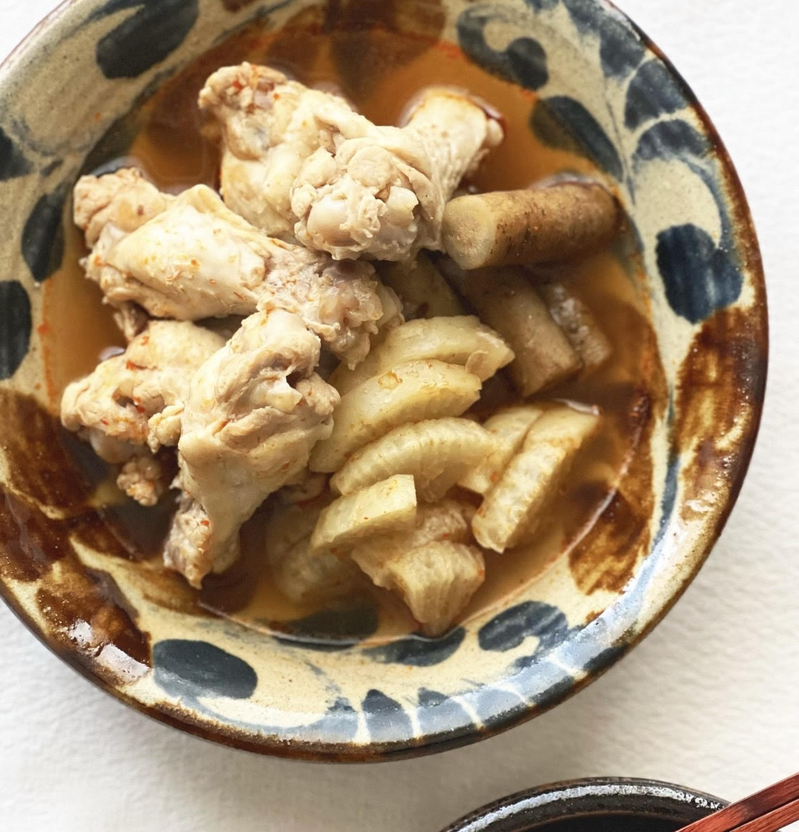 手羽元と大根、ごぼうの豆板醤煮込み。