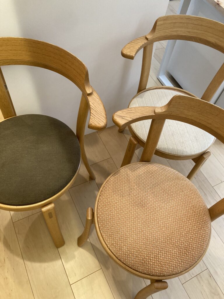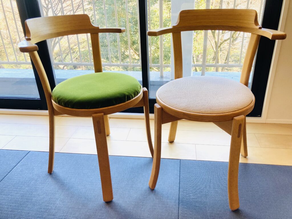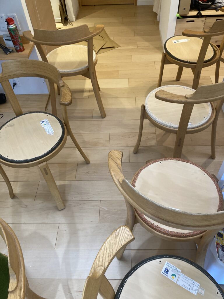 テルミン大学の椅子8脚、中古で買いそろえたので座面の布がバラバラ。汚れが気になるものもでてきて、思い切ってDIYで布張りしてみることに。