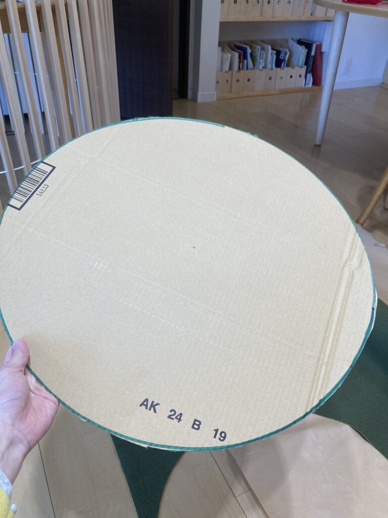 あとは段ボールに箸を刺してグルっとペンを1周させて、、、思ってた以上にスタートとゴールがズレました。