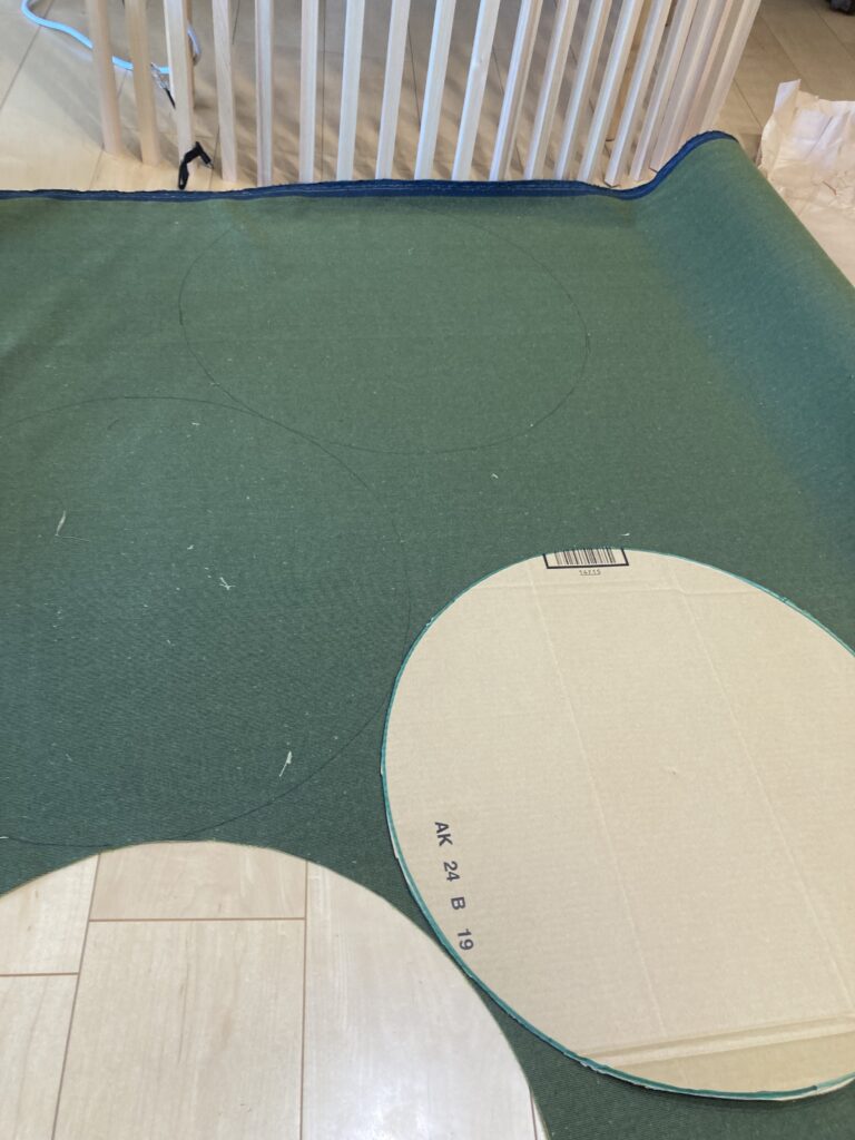 少々不格好な円ですが、気に入った布が手に入ったので、きっとイメージ通りの仕上がりになると信じて、終始ウキウキです。